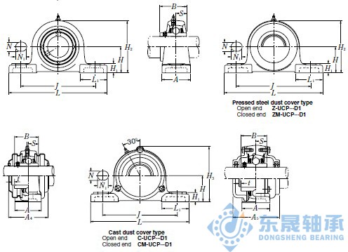 Unitnumber cast dust cover type 帶鑄鐵外罩座組件軸承型號
